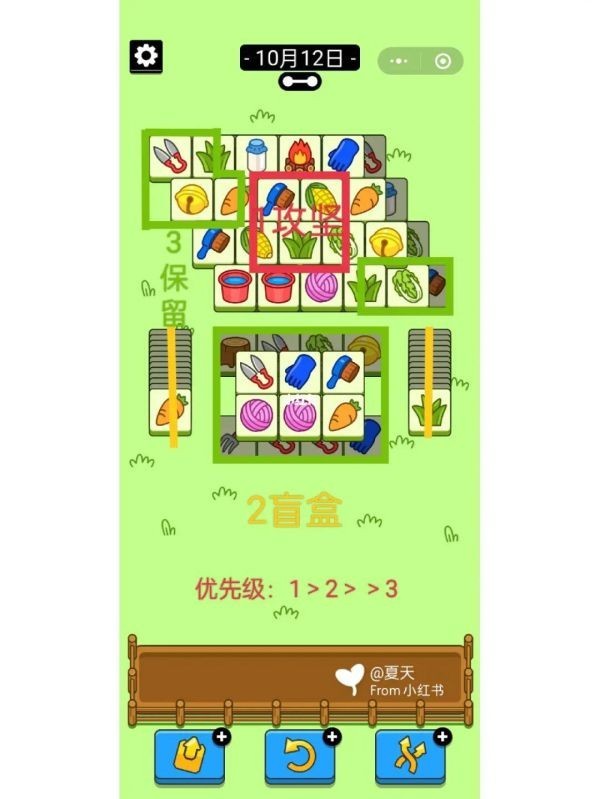 移出+洗牌/移出+移出/洗牌 。下面请看由“夏天”带来的《羊了个羊》第二关攻略10.12,保留区(绿)先消上层 , |
